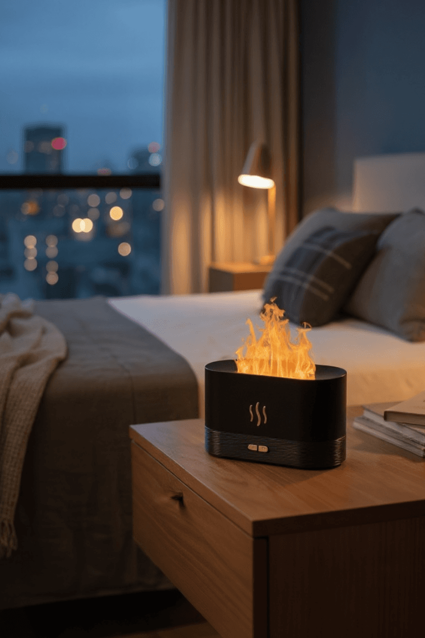 Krótko naciśnij przycisk światła, aby włączyć efekt płomienia.