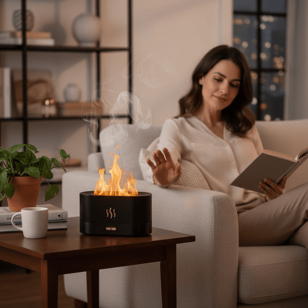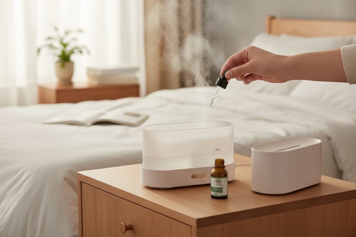 Wlej wodę do zbiornika (nie przekraczając linii poziomu wody), dodaj odpowiednią ilość olejku eterycznego, a następnie krótko naciśnij przycisk rozpylania, aby włączyć aromaterapię.